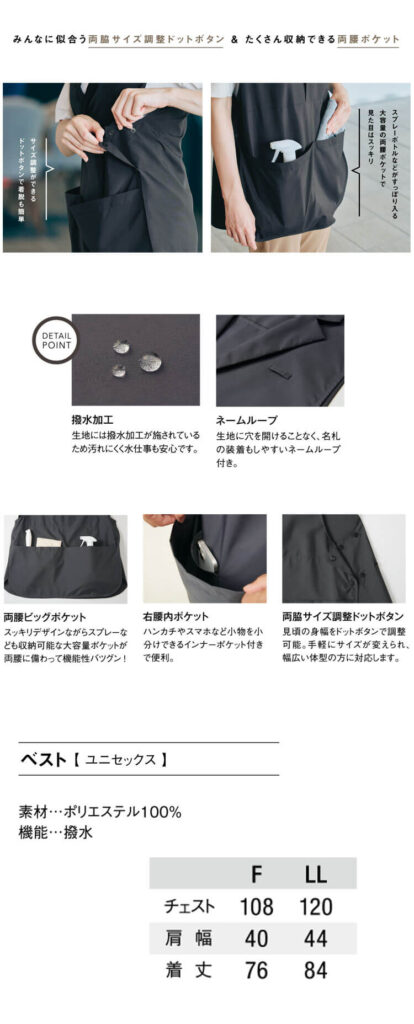 大容量ビッグポケット撥水ベスト 2026年2月24日 最終更新日時 : 2026年2月24日 Webmaster 「見られる仕事」を意識した落ち着いたカラーリングとデザインできちんと感を大切にしながらも、着やすさと快適さをとことん追求。 カラー ブラック グレー